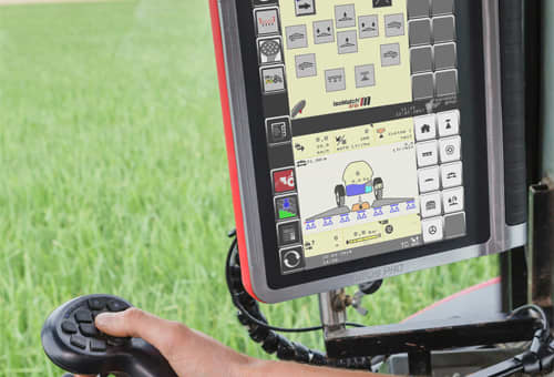 De iXtrack T-serie is standaard 100% ISOBUS-compatibel, wat een eenvoudige plug-and-play met de IsoMatch Tellus GO+ of PRO of een andere AEF-gecertificeerde terminal betekent. De innovatieve iXspray hardware en software met intuïtieve touch-interface garandeert een gebruiksvriendelijke bediening van de veldspuit. iXspray zit vol met leuke functies om het leven van de bestuurder te vergemakkelijken, tijd te besparen en fouten te voorkomen in een druk werkseizoen, bijvoorbeeld pre-sets voor spuitopdrachten en boomconfiguratie kunnen eenvoudig worden geconfigureerd.
